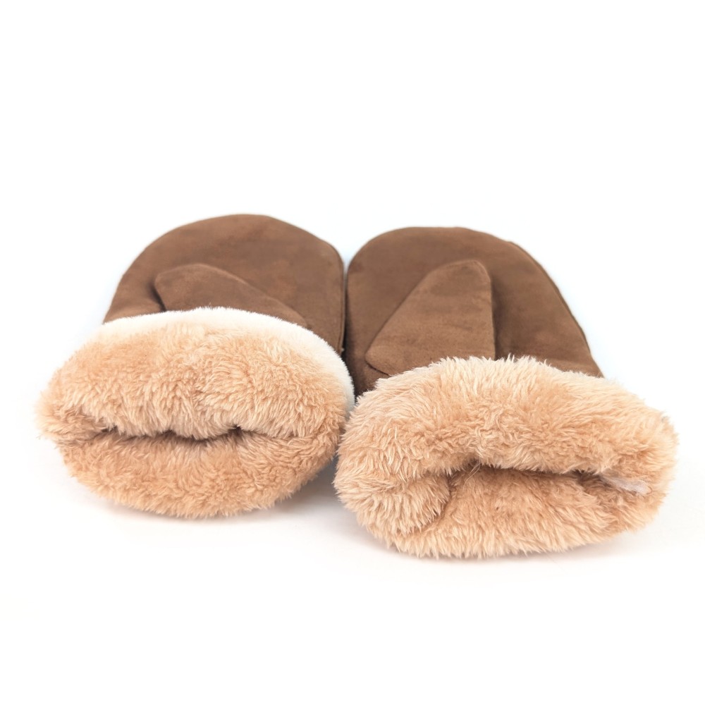 These tan sheepskin mittens feature a timeless unisex design with a faux fur cuff and button detail. Made with a suede-effect finish, they_re warm, practical, and effortlessly stylish.