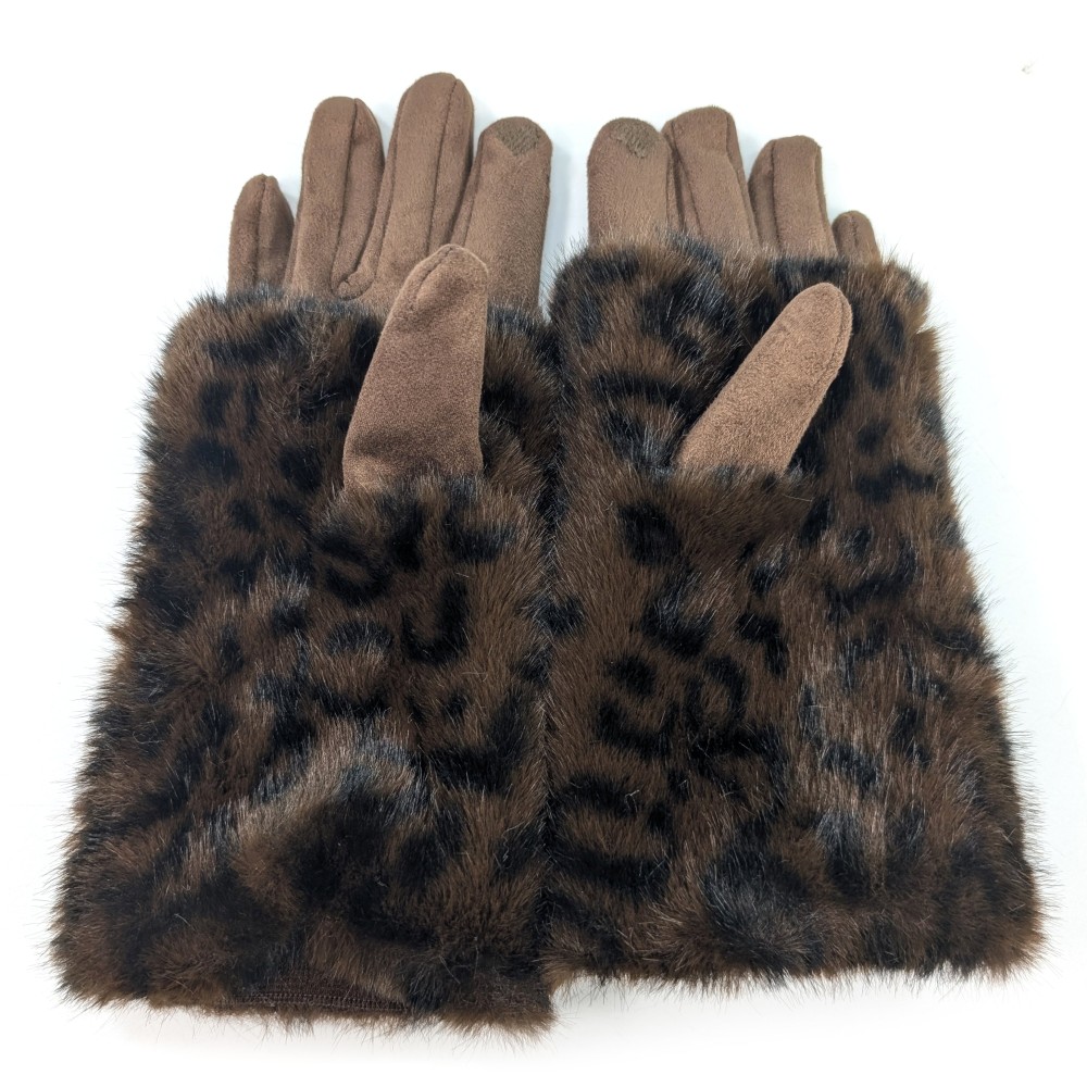 Super Fluffy Faux Fur Two in One Gloves _ Brown Animal Print | Ladies Gloves