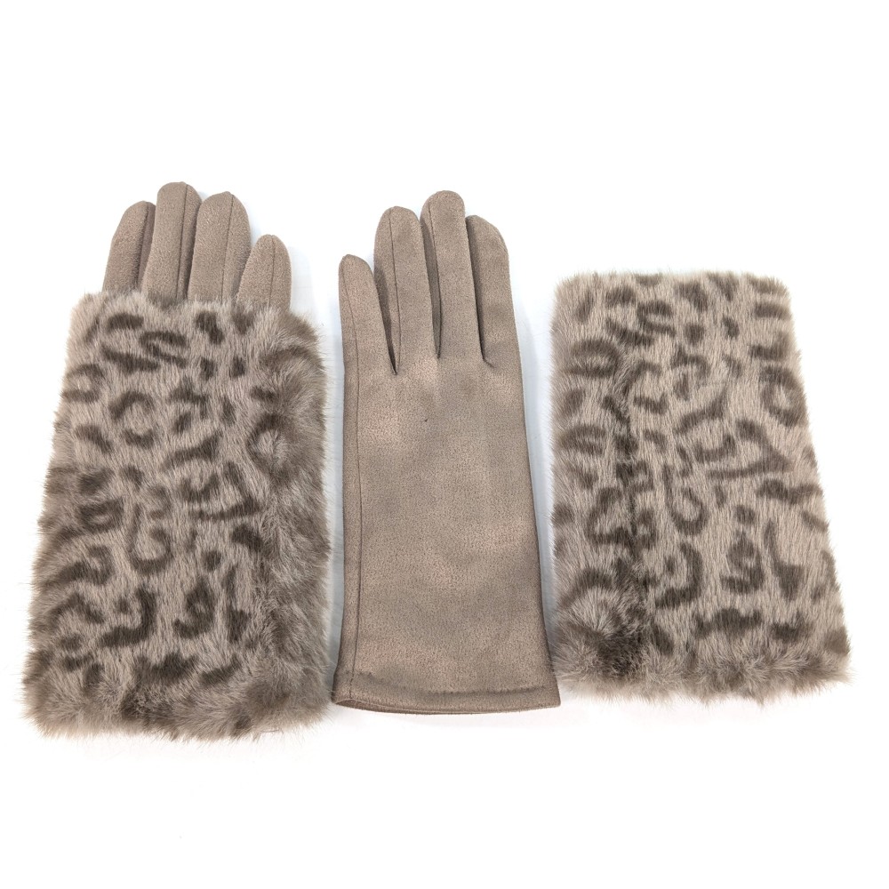 Super Fluffy Faux Fur Two in One Gloves _ Mink Animal Print | Ladies Gloves