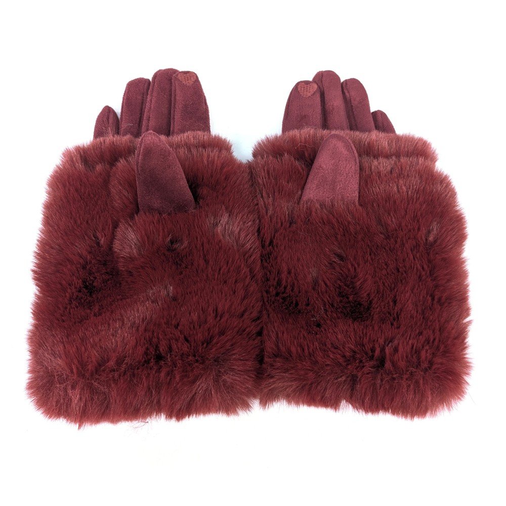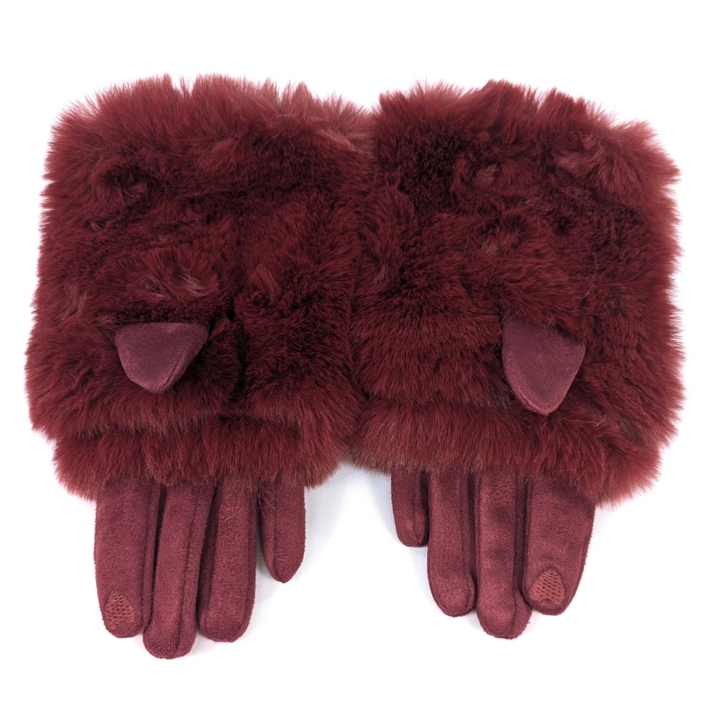 Stand out with these wine red faux fur gloves featuring a unique fold-down cuff. Super warm, fluffy, and finished with touchscreen tips, they bring together fashion and practicality in one clever design.