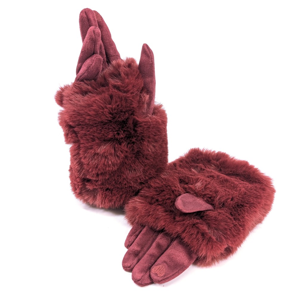 Super Fluffy Faux Fur Two in One Gloves _ Wine Red | Ladies Gloves