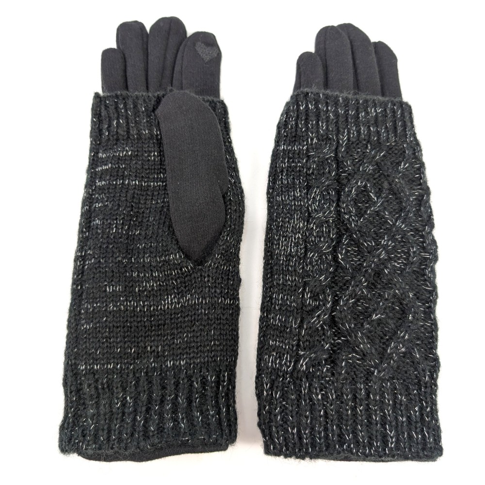 Two pairs of gloves in one that actually give three different options. You get a pair of normal gloves inside a pair of cable knit fingerless gloves. You can wear them together for complete winter cosiness or separate them to have either normal gloves or a pair of fingerless gloves.